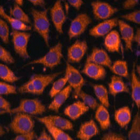 Immunofluorescent analysis of CD283 staining in L929 cells. Formalin-fixed cells were permeabilized with 0.1% Triton X-100 in TBS for 5-10 minutes and blocked with 3% BSA-PBS for 30 minutes at room temperature. Cells were probed with the primary antibody in 3% BSA-PBS and incubated overnight at 4 °C in a humidified chamber. Cells were washed with PBST and incubated with a AF 594-conjugated secondary antibody (red) in PBS at room temperature in the dark.