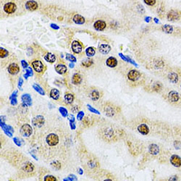 Immunohistochemical analysis of Rpp29 staining in rat kidney formalin fixed paraffin embedded tissue section. The section was pre-treated using heat mediated antigen retrieval with sodium citrate buffer (pH 6.0). The section was then incubated with the antibody at room temperature and detected using an HRP conjugated compact polymer system. DAB was used as the chromogen. The section was then counterstained with haematoxylin and mounted with DPX.