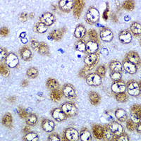 Immunohistochemical analysis of RPS10 staining in rat brain formalin fixed paraffin embedded tissue section. The section was pre-treated using heat mediated antigen retrieval with sodium citrate buffer (pH 6.0). The section was then incubated with the antibody at room temperature and detected using an HRP conjugated compact polymer system. DAB was used as the chromogen. The section was then counterstained with haematoxylin and mounted with DPX. -