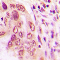 Immunohistochemical analysis of BNIP3L staining in human lung cancer formalin fixed paraffin embedded tissue section. The section was pre-treated using heat mediated antigen retrieval with sodium citrate buffer (pH 6.0). The section was then incubated with the antibody at room temperature and detected using an HRP conjugated compact polymer system. DAB was used as the chromogen. The section was then counterstained with haematoxylin and mounted with DPX.