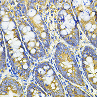 Immunohistochemical analysis of HPGD staining in rat intestine formalin fixed paraffin embedded tissue section. The section was pre-treated using heat mediated antigen retrieval with sodium citrate buffer (pH 6.0). The section was then incubated with the antibody at room temperature and detected using an HRP conjugated compact polymer system. DAB was used as the chromogen. The section was then counterstained with haematoxylin and mounted with DPX.