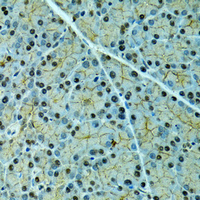 Immunohistochemical analysis of Alpha-2-antiplasmin staining in rat pancreas formalin fixed paraffin embedded tissue section. The section was pre-treated using heat mediated antigen retrieval with sodium citrate buffer (pH 6.0). The section was then incubated with the antibody at room temperature and detected using an HRP conjugated compact polymer system. DAB was used as the chromogen. The section was then counterstained with haematoxylin and mounted with DPX.