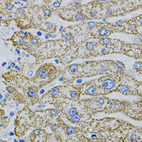 Immunohistochemical analysis of EPO staining in human liver formalin fixed paraffin embedded tissue section. The section was pre-treated using heat mediated antigen retrieval with sodium citrate buffer (pH 6.0). The section was then incubated with the antibody at room temperature and detected using an HRP conjugated compact polymer system. DAB was used as the chromogen. The section was then counterstained with haematoxylin and mounted with DPX.