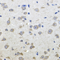 Immunohistochemical analysis of ALPL staining in mouse brain formalin fixed paraffin embedded tissue section. The section was pre-treated using heat mediated antigen retrieval with sodium citrate buffer (pH 6.0). The section was then incubated with the antibody at room temperature and detected using an HRP conjugated compact polymer system. DAB was used as the chromogen. The section was then counterstained with haematoxylin and mounted with DPX.