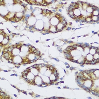 Immunohistochemical analysis of ECH1 staining in human colon formalin fixed paraffin embedded tissue section. The section was pre-treated using heat mediated antigen retrieval with sodium citrate buffer (pH 6.0). The section was then incubated with the antibody at room temperature and detected using an HRP conjugated compact polymer system. DAB was used as the chromogen. The section was then counterstained with haematoxylin and mounted with DPX.