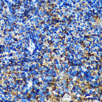 Immunohistochemical analysis of GMIP staining in mouse spleen formalin fixed paraffin embedded tissue section. The section was pre-treated using heat mediated antigen retrieval with sodium citrate buffer (pH 6.0). The section was then incubated with the antibody at room temperature and detected using an HRP conjugated compact polymer system. DAB was used as the chromogen. The section was then counterstained with haematoxylin and mounted with DPX.