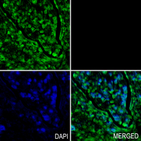 Immunohistochemical analysis of EPHX2 staining in human kidney formalin fixed paraffin embedded tissue section. The section was pre-treated using heat mediated antigen retrieval with sodium citrate buffer (pH 6.0). The section was then incubated with the antibody at room temperature and detected using an HRP conjugated compact polymer system. Tyramide-AF488 (green) was used as the chromogen. The section was then counterstained with DAPI (blue).
