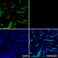 Immunohistochemical analysis of DCAF7 staining in rat kidney formalin fixed paraffin embedded tissue section. The section was pre-treated using heat mediated antigen retrieval with sodium citrate buffer (pH 6.0). The section was then incubated with the antibody at room temperature and detected using an HRP conjugated compact polymer system. Tyramide-AF488 (green) was used as the chromogen. The section was then counterstained with DAPI (blue).
