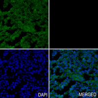 Immunohistochemical analysis of SHH staining in human tonsil formalin fixed paraffin embedded tissue section. The section was pre-treated using heat mediated antigen retrieval with sodium citrate buffer (pH 6.0). The section was then incubated with the antibody at room temperature and detected using an HRP conjugated compact polymer system. Tyramide-AF488 (green) was used as the chromogen. The section was then counterstained with DAPI (blue).