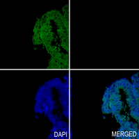 Immunohistochemical analysis of ARHGAP26 staining in human ovary formalin fixed paraffin embedded tissue section. The section was pre-treated using heat mediated antigen retrieval with sodium citrate buffer (pH 6.0). The section was then incubated with the antibody at room temperature and detected using an HRP conjugated compact polymer system. Tyramide-AF488 (green) was used as the chromogen. The section was then counterstained with DAPI (blue).
