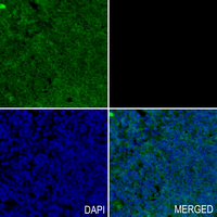 Immunohistochemical analysis of PKN2 staining in human tonsil formalin fixed paraffin embedded tissue section. The section was pre-treated using heat mediated antigen retrieval with sodium citrate buffer (pH 6.0). The section was then incubated with the antibody at room temperature and detected using an HRP conjugated compact polymer system. Tyramide-AF488 (green) was used as the chromogen. The section was then counterstained with DAPI (blue). -