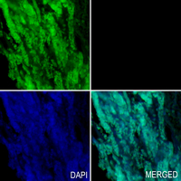 Immunohistochemical analysis of NUP50 staining in human liver cancer formalin fixed paraffin embedded tissue section. The section was pre-treated using heat mediated antigen retrieval with sodium citrate buffer (pH 6.0). The section was then incubated with the antibody at room temperature and detected using an HRP conjugated compact polymer system. Tyramide-AF488 (green) was used as the chromogen. The section was then counterstained with DAPI (blue).