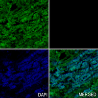 Immunohistochemical analysis of ERK2 staining in rat kidney formalin fixed paraffin embedded tissue section. The section was pre-treated using heat mediated antigen retrieval with sodium citrate buffer (pH 6.0). The section was then incubated with the antibody at room temperature and detected using an HRP conjugated compact polymer system. Tyramide-AF488 (green) was used as the chromogen. The section was then counterstained with DAPI (blue).