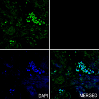 Immunohistochemical analysis of STAG2 staining in human kidney formalin fixed paraffin embedded tissue section. The section was pre-treated using heat mediated antigen retrieval with sodium citrate buffer (pH 6.0). The section was then incubated with the antibody at room temperature and detected using an HRP conjugated compact polymer system. Tyramide-AF488 (green) was used as the chromogen. The section was then counterstained with DAPI (blue).