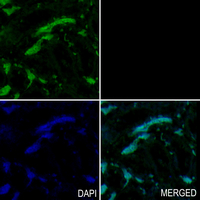 Immunohistochemical analysis of Androgen Receptor staining in rat kidney formalin fixed paraffin embedded tissue section. The section was pre-treated using heat mediated antigen retrieval with sodium citrate buffer (pH 6.0). The section was then incubated with the antibody at room temperature and detected using an HRP conjugated compact polymer system. Tyramide-AF488 (green) was used as the chromogen. The section was then counterstained with DAPI (blue).
