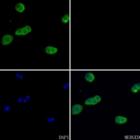 产品描述:Rabbit polyclonal antibody to Beta-actin免疫原:KLH-conjugated synthetic peptide encompassing a sequence within the N-term region of human Beta-actin. The exact sequence is proprietary.纯化方式:The antibody was purified by immunogen affinity chromatography.克隆类型:Polyclonal产品形式:Liquid in 0.42% Potassium phosphate, 0.87% Sodium chloride, pH 7.3, 30% glycerol, and 0.01% sodium azide.稀释比:WB (1/500 - 1/1000), IH (1/50 - 1/100), IF/IC (1/50 - 1/200)基因名称:ACTB相关名称:Actin cytoplasmic 1; Beta-actin