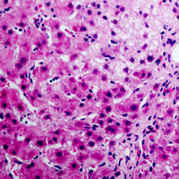 Immunohistochemical analysis of Annexin A6 staining in human liver cancer formalin fixed paraffin embedded tissue section. The section was pre-treated using heat mediated antigen retrieval with sodium citrate buffer (pH 6.0). The section was then incubated with the antibody at room temperature and detected using an HRP conjugated compact polymer system. AEC was used as the chromogen. The section was then counterstained with haematoxylin and mounted with DPX. -