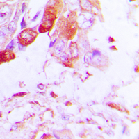 Immunohistochemical analysis of Aquaporin 5 staining in human lung cancer formalin fixed paraffin embedded tissue section. The section was pre-treated using heat mediated antigen retrieval with sodium citrate buffer (pH 6.0). The section was then incubated with the antibody at room temperature and detected using an HRP conjugated compact polymer system. DAB was used as the chromogen. The section was then counterstained with haematoxylin and mounted with DPX.