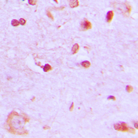 Immunohistochemical analysis of BRCA1 staining in human brain formalin fixed paraffin embedded tissue section. The section was pre-treated using heat mediated antigen retrieval with sodium citrate buffer (pH 6.0). The section was then incubated with the antibody at room temperature and detected using an HRP conjugated compact polymer system. DAB was used as the chromogen. The section was then counterstained with haematoxylin and mounted with DPX.