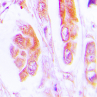 Immunohistochemical analysis of Caspase 7 staining in human lung cancer formalin fixed paraffin embedded tissue section. The section was pre-treated using heat mediated antigen retrieval with sodium citrate buffer (pH 6.0). The section was then incubated with the antibody at room temperature and detected using an HRP conjugated compact polymer system. DAB was used as the chromogen. The section was then counterstained with haematoxylin and mounted with DPX.
