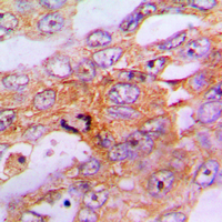 Immunohistochemical analysis of Caspase 9 staining in human lung cancer formalin fixed paraffin embedded tissue section. The section was pre-treated using heat mediated antigen retrieval with sodium citrate buffer (pH 6.0). The section was then incubated with the antibody at room temperature and detected using an HRP conjugated compact polymer system. DAB was used as the chromogen. The section was then counterstained with haematoxylin and mounted with DPX. -