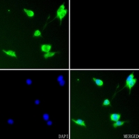 产品描述:Rabbit polyclonal antibody to RUNX2免疫原:KLH-conjugated synthetic peptide encompassing a sequence within the center region of human RUNX2. The exact sequence is proprietary.纯化方式:The antibody was purified by immunogen affinity chromatography.克隆类型:Polyclonal产品形式:Liquid in 0.42% Potassium phosphate, 0.87% Sodium chloride, pH 7.3, 30% glycerol, and 0.01% sodium azide.稀释比:WB (1/500 - 1/1000), IH (1/50 - 1/100), IF/IC (1/50 - 1/200)基因名称:RUNX2相关名称:AML3; CBFA1; OSF2; PEBP2A; Runt-related transcription factor 2; Acute myeloid leukemia 3 protein; Core-binding factor subunit alpha-1; CBF-alpha-1; Oncogene AML-3; Osteoblast-specific transcription factor 2; OSF-2; Polyomavirus enhancer-binding protein 2 alpha A subunit; PEA2-alpha A; PEBP2-alpha A; SL3-3 enhancer factor 1 alpha A subunit; SL3/AKV core-binding factor alpha A subunit