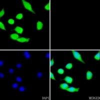 产品描述:Rabbit polyclonal antibody to Cyclin G1免疫原:KLH-conjugated synthetic peptide encompassing a sequence within the center region of human Cyclin G1. The exact sequence is proprietary.纯化方式:The antibody was purified by immunogen affinity chromatography.克隆类型:Polyclonal产品形式:Liquid in 0.42% Potassium phosphate, 0.87% Sodium chloride, pH 7.3, 30% glycerol, and 0.01% sodium azide.稀释比:WB (1/500 - 1/1000), IH (1/50 - 1/100), IF/IC (1/50 - 1/200)基因名称:CCNG1相关名称:CCNG; CYCG1; Cyclin-G1; Cyclin-G