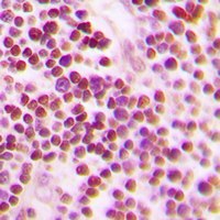Immunohistochemical analysis of CDC25A (Phospho-S75) staining in human tonsil formalin fixed paraffin embedded tissue section. The section was pre-treated using heat mediated antigen retrieval with sodium citrate buffer (pH 6.0). The section was then incubated with the antibody at room temperature and detected using an HRP conjugated compact polymer system. DAB was used as the chromogen. The section was then counterstained with haematoxylin and mounted with DPX.
