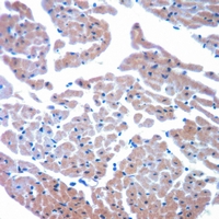 Immunohistochemical analysis of Cytochrome P450 8B1 staining in rat heart formalin fixed paraffin embedded tissue section. The section was pre-treated using heat mediated antigen retrieval with sodium citrate buffer (pH 6.0). The section was then incubated with the antibody at room temperature and detected using an HRP conjugated compact polymer system. DAB was used as the chromogen. The section was then counterstained with haematoxylin and mounted with DPX.
