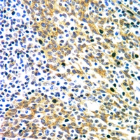 产品描述:Rabbit polyclonal antibody to DAB1免疫原:KLH-conjugated synthetic peptide encompassing a sequence within the center region of human DAB1. The exact sequence is proprietary.纯化方式:The antibody was purified by immunogen affinity chromatography.克隆类型:Polyclonal产品形式:Liquid in 0.42% Potassium phosphate, 0.87% Sodium chloride, pH 7.3, 30% glycerol, and 0.01% sodium azide.稀释比:WB (1/500 - 1/1000), IH (1/50 - 1/100), IF/IC (1/50 - 1/200)基因名称:DAB1相关名称:Disabled homolog 1