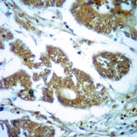 Immunohistochemical analysis of Dopamine Receptor D1 staining in human colorectal cancer formalin fixed paraffin embedded tissue section. The section was pre-treated using heat mediated antigen retrieval with sodium citrate buffer (pH 6.0). The section was then incubated with the antibody at room temperature and detected using an HRP conjugated compact polymer system. DAB was used as the chromogen. The section was then counterstained with haematoxylin and mounted with DPX. -