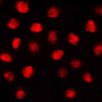Immunofluorescent analysis of EGR staining in MCF7 cells. Formalin-fixed cells were permeabilized with 0.1% Triton X-100 in TBS for 5-10 minutes and blocked with 3% BSA-PBS for 30 minutes at room temperature. Cells were probed with the primary antibody in 3% BSA-PBS and incubated overnight at 4 °C in a humidified chamber. Cells were washed with PBST and incubated with a DyLight 594-conjugated secondary antibody (red) in PBS at room temperature in the dark.