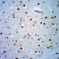 Immunohistochemical analysis of HUR staining in human brain formalin fixed paraffin embedded tissue section. The section was pre-treated using heat mediated antigen retrieval with sodium citrate buffer (pH 6.0). The section was then incubated with the antibody at room temperature and detected using an HRP conjugated compact polymer system. DAB was used as the chromogen. The section was then counterstained with haematoxylin and mounted with DPX. -
