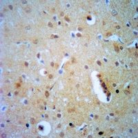Immunohistochemical analysis of ELF4 staining in rat brain formalin fixed paraffin embedded tissue section. The section was pre-treated using heat mediated antigen retrieval with sodium citrate buffer (pH 6.0). The section was then incubated with the antibody at room temperature and detected using an HRP conjugated compact polymer system. DAB was used as the chromogen. The section was then counterstained with haematoxylin and mounted with DPX.