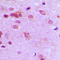 Immunohistochemical analysis of c-FER staining in human brain formalin fixed paraffin embedded tissue section. The section was pre-treated using heat mediated antigen retrieval with sodium citrate buffer (pH 6.0). The section was then incubated with the antibody at room temperature and detected using an HRP conjugated compact polymer system. DAB was used as the chromogen. The section was then counterstained with haematoxylin and mounted with DPX. -