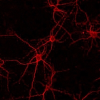 Immunofluorescent analysis of FGFR2 staining in rat cerebral cortex cells. Formalin-fixed cells were permeabilized with 0.1% Triton X-100 in TBS for 5-10 minutes and blocked with 3% BSA-PBS for 30 minutes at room temperature. Cells were probed with the primary antibody in 3% BSA-PBS and incubated overnight at 4 °C in a hidified chamber. Cells were washed with PBST and incubated with a AF594-conjugated secondary antibody (red) in PBS at room temperature in the dark.
