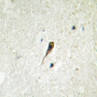 Immunohistochemical analysis of 5-HT1A staining in human brain formalin fixed paraffin embedded tissue section. The section was pre-treated using heat mediated antigen retrieval with sodium citrate buffer (pH 6.0). The section was then incubated with the antibody at room temperature and detected using an HRP conjugated compact polymer system. DAB was used as the chromogen. The section was then counterstained with haematoxylin and mounted with DPX. -
