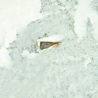 Immunohistochemical analysis of 5-HT4 staining in human brain formalin fixed paraffin embedded tissue section. The section was pre-treated using heat mediated antigen retrieval with sodium citrate buffer (pH 6.0). The section was then incubated with the antibody at room temperature and detected using an HRP conjugated compact polymer system. DAB was used as the chromogen. The section was then counterstained with haematoxylin and mounted with DPX. -