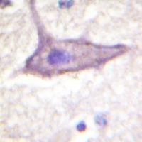 Immunohistochemical analysis of IFNGR1 (Phospho-Y457) staining in human brain formalin fixed paraffin embedded tissue section. The section was pre-treated using heat mediated antigen retrieval with sodium citrate buffer (pH 6.0). The section was then incubated with the antibody at room temperature and detected using an HRP conjugated compact polymer system. DAB was used as the chromogen. The section was then counterstained with haematoxylin and mounted with DPX. -