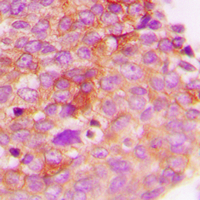 Immunohistochemical analysis of IRS1 (Phospho-S307) staining in human breast cancer formalin fixed paraffin embedded tissue section. The section was pre-treated using heat mediated antigen retrieval with sodium citrate buffer (pH 6.0). The section was then incubated with the antibody at room temperature and detected using an HRP conjugated compact polymer system. DAB was used as the chromogen. The section was then counterstained with haematoxylin and mounted with DPX.
