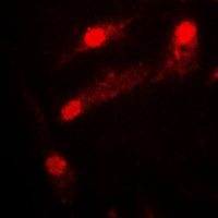 Immunofluorescent analysis of LIMK2 staining in COLO205 cells. Formalin-fixed cells were permeabilized with 0.1% Triton X-100 in TBS for 5-10 minutes and blocked with 3% BSA-PBS for 30 minutes at room temperature. Cells were probed with the primary antibody in 3% BSA-PBS and incubated overnight at 4 °C in a humidified chamber. Cells were washed with PBST and incubated with a DyLight 594-conjugated secondary antibody (red) in PBS at room temperature in the dark.