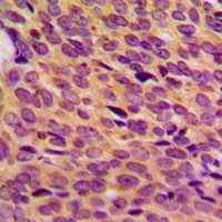 Immunohistochemical analysis of NF1 staining in human breast cancer formalin fixed paraffin embedded tissue section. The section was pre-treated using heat mediated antigen retrieval with sodium citrate buffer (pH 6.0). The section was then incubated with the antibody at room temperature and detected using an HRP conjugated compact polymer system. DAB was used as the chromogen. The section was then counterstained with haematoxylin and mounted with DPX. -