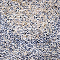 Immunohistochemical analysis of PLC gamma 2 (Phospho-Y1217) staining in human tonsil formalin fixed paraffin embedded tissue section. The section was pre-treated using heat mediated antigen retrieval with sodium citrate buffer (pH 6.0). The section was then incubated with the antibody at room temperature and detected using an HRP conjugated compact polymer system. DAB was used as the chromogen. The section was then counterstained with haematoxylin and mounted with DPX. -