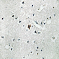 Immunohistochemical analysis of Phospholipase D2 (Phospho-Y169) staining in human brain formalin fixed paraffin embedded tissue section. The section was pre-treated using heat mediated antigen retrieval with sodium citrate buffer (pH 6.0). The section was then incubated with the antibody at room temperature and detected using an HRP conjugated compact polymer system. DAB was used as the chromogen. The section was then counterstained with haematoxylin and mounted with DPX.