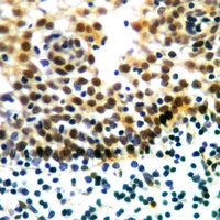产品描述:Rabbit polyclonal antibody to ERK1/2免疫原:KLH-conjugated synthetic peptide encompassing a sequence within the center region of human ERK1/2. The exact sequence is proprietary.纯化方式:The antibody was purified by immunogen affinity chromatography.克隆类型:Polyclonal产品形式:Liquid in 0.42% Potassium phosphate, 0.87% Sodium chloride, pH 7.3, 30% glycerol, and 0.01% sodium azide.稀释比:WB (1/500 - 1/1000), IH (1/50 - 1/100), IF/IC (1/50 - 1/200)基因名称:MAPK1; MAPK3相关名称:MAPK3; ERK1; PRKM3; Mitogen-activated protein kinase 3; MAP kinase 3; MAPK 3; ERT2; Extracellular signal-regulated kinase 1; ERK-1; Insulin-stimulated MAP2 kinase; MAP kinase isoform p44; p44-MAPK; Microtubule-associated protein 2 kinase; p44-ERK1; MAPK1; ERK2; PRKM1; PRKM2; Mitogen-activated protein kinase 1; MAP kinase 1; MAPK 1; ERT1; Extracellular signal-regulated kinase 2; ERK-2; MAP kinase isoform p42; p42-MAPK; Mitogen-activated protein kinase 2; MAP kinase 2; MAPK 2