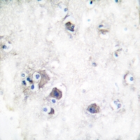 Immunohistochemical analysis of Peripherin staining in human brain formalin fixed paraffin embedded tissue section. The section was pre-treated using heat mediated antigen retrieval with sodium citrate buffer (pH 6.0). The section was then incubated with the antibody at room temperature and detected using an HRP conjugated compact polymer system. DAB was used as the chromogen. The section was then counterstained with haematoxylin and mounted with DPX.
