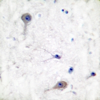 Immunohistochemical analysis of Patched staining in human brain formalin fixed paraffin embedded tissue section. The section was pre-treated using heat mediated antigen retrieval with sodium citrate buffer (pH 6.0). The section was then incubated with the antibody at room temperature and detected using an HRP conjugated compact polymer system. DAB was used as the chromogen. The section was then counterstained with haematoxylin and mounted with DPX.
