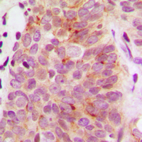 产品描述:Rabbit polyclonal antibody to S6K1免疫原:KLH-conjugated synthetic peptide encompassing a sequence within the C-term region of human S6K1. The exact sequence is proprietary.纯化方式:The antibody was purified by immunogen affinity chromatography.克隆类型:Polyclonal产品形式:Liquid in 0.42% Potassium phosphate, 0.87% Sodium chloride, pH 7.3, 30% glycerol, and 0.01% sodium azide.稀释比:WB (1/500 - 1/1000), IH (1/100 - 1/200), IF/IC (1/100 - 1/500)基因名称:RPS6KB1相关名称:STK14A; Ribosomal protein S6 kinase beta-1; S6K-beta-1; S6K1; 70 kDa ribosomal protein S6 kinase 1; P70S6K1; p70-S6K 1; Ribosomal protein S6 kinase I; Serine/threonine-protein kinase 14A; p70 ribosomal S6 kinase alpha; p70 S6 kinase alpha; p70 S6K-alpha; p70 S6KA
