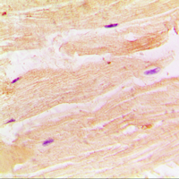 Immunohistochemical analysis of RRAD staining in human muscle formalin fixed paraffin embedded tissue section. The section was pre-treated using heat mediated antigen retrieval with sodium citrate buffer (pH 6.0). The section was then incubated with the antibody at room temperature and detected using an HRP conjugated compact polymer system. DAB was used as the chromogen. The section was then counterstained with haematoxylin and mounted with DPX. -