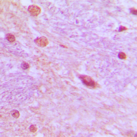 Immunohistochemical analysis of SRSF3 staining in human brain formalin fixed paraffin embedded tissue section. The section was pre-treated using heat mediated antigen retrieval with sodium citrate buffer (pH 6.0). The section was then incubated with the antibody at room temperature and detected using an HRP conjugated compact polymer system. DAB was used as the chromogen. The section was then counterstained with haematoxylin and mounted with DPX. -